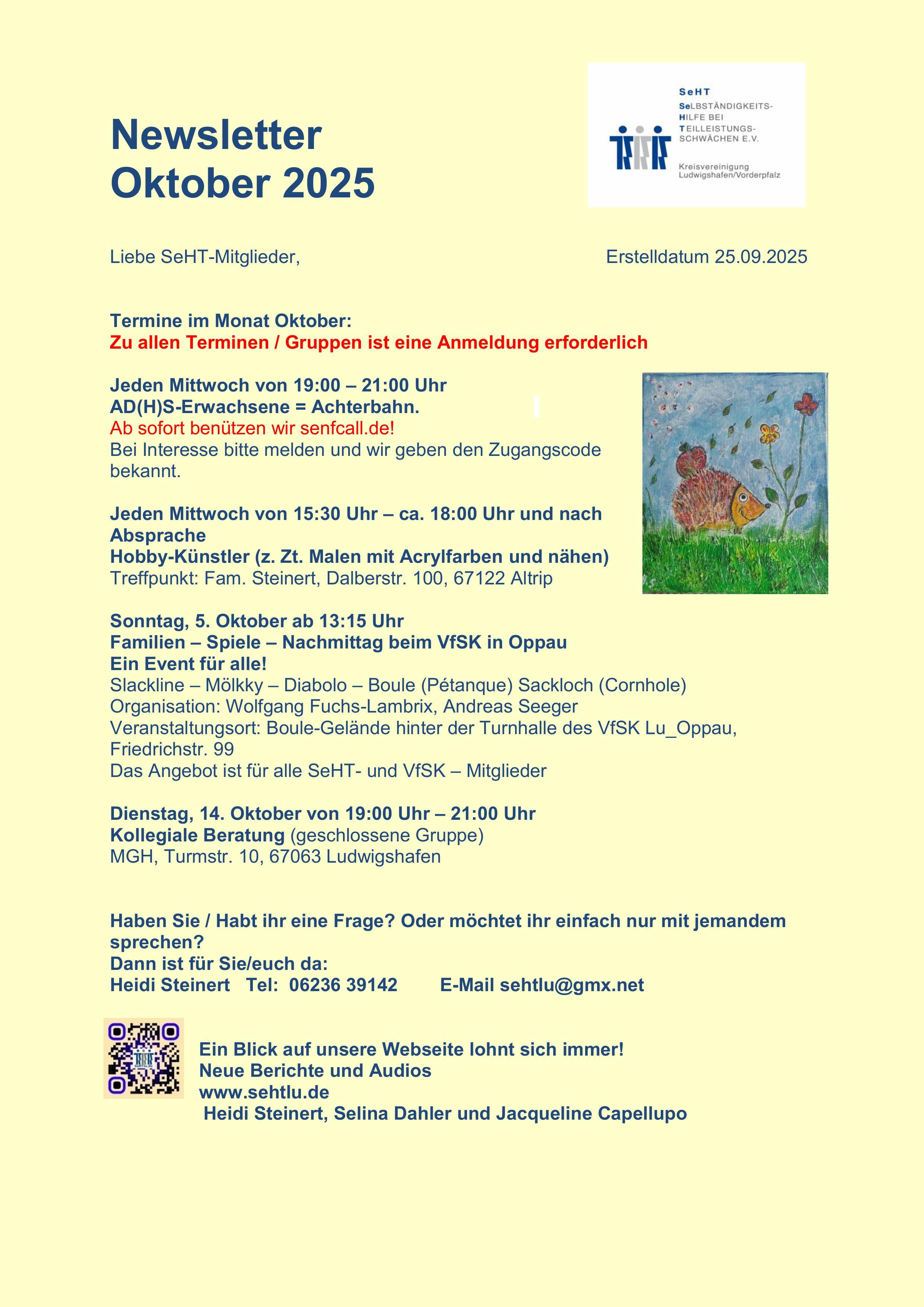 Kreativität und Spaß in der SeHT-Mal- und Nähgruppe der KV LU